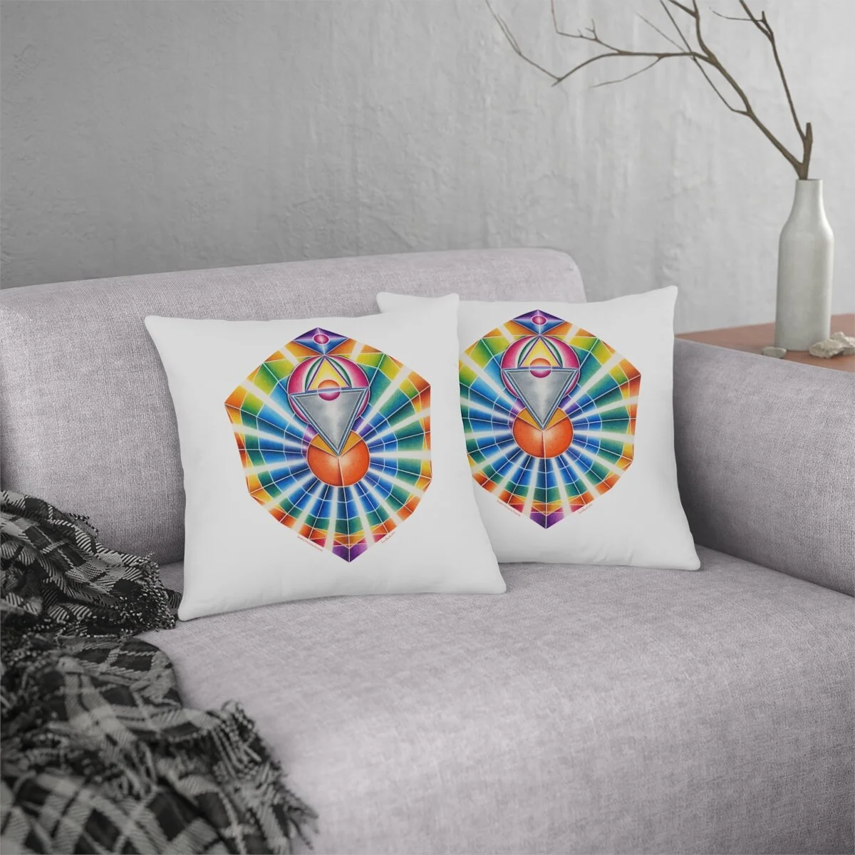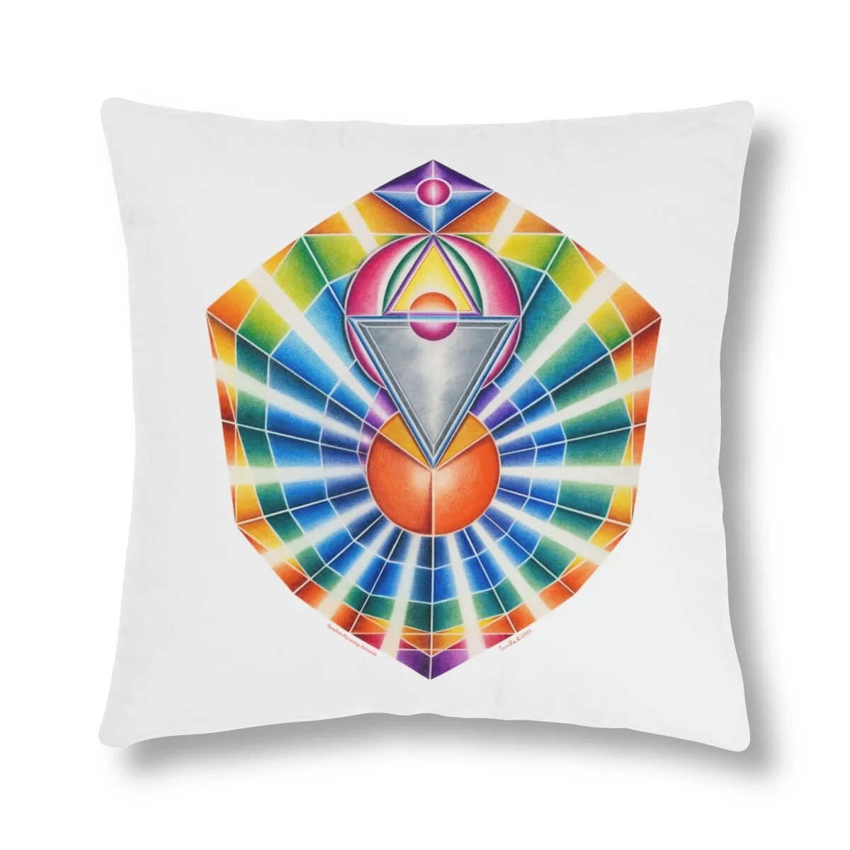 Add beauty, vitality, and harmony to your home with this exquisite Sacred Geometry pillow! Relax and revitalize after a long day, or hug it when you need healing comfort. And it's waterproof! Come rain or coffee spills, these pillows stay fresh, clean, and stain-free. Soft to the touch and perfect for that extra layer of protection from unwanted liquids and oils. Choose one of three different sizes – they all come with a concealed zipper and a removable polyester filling.