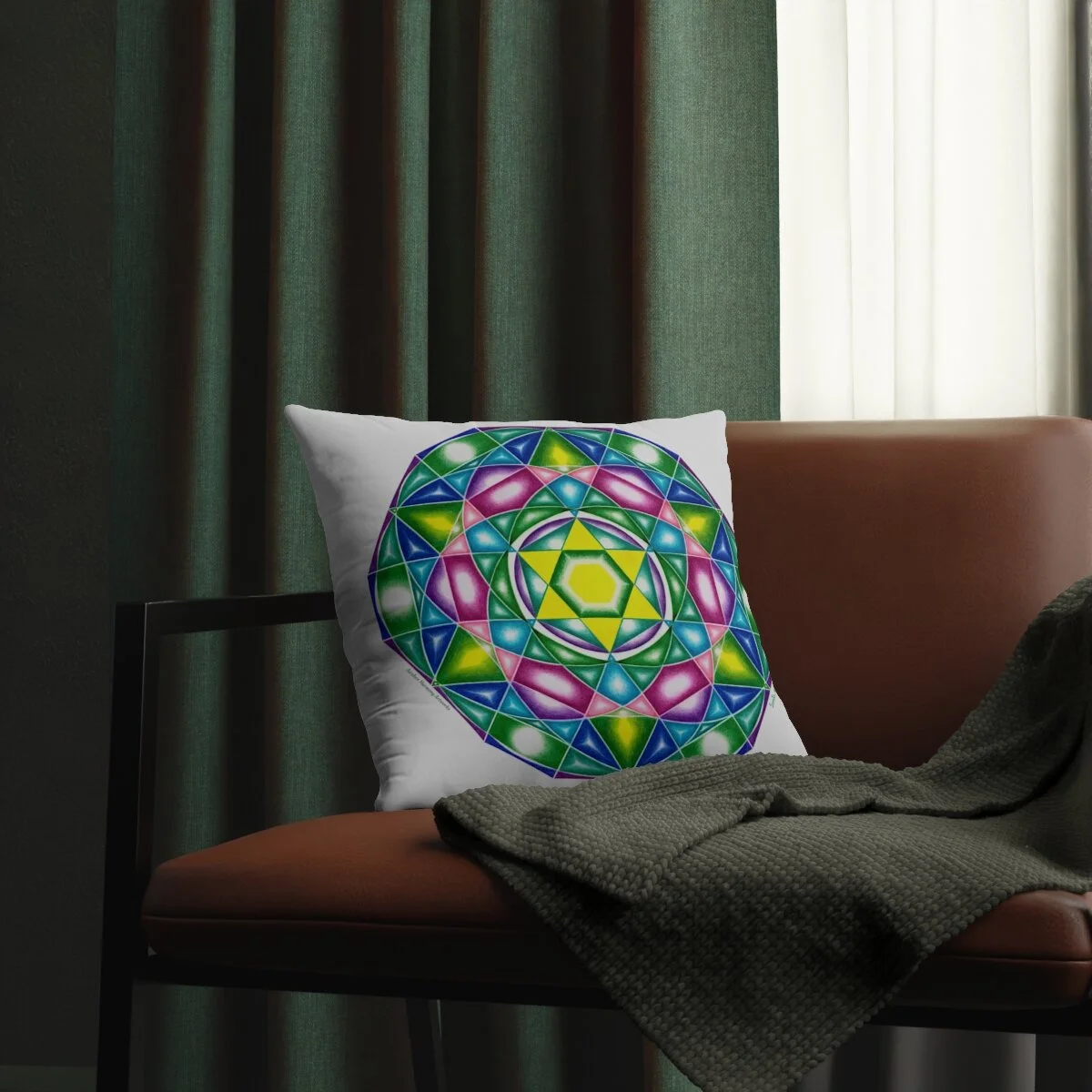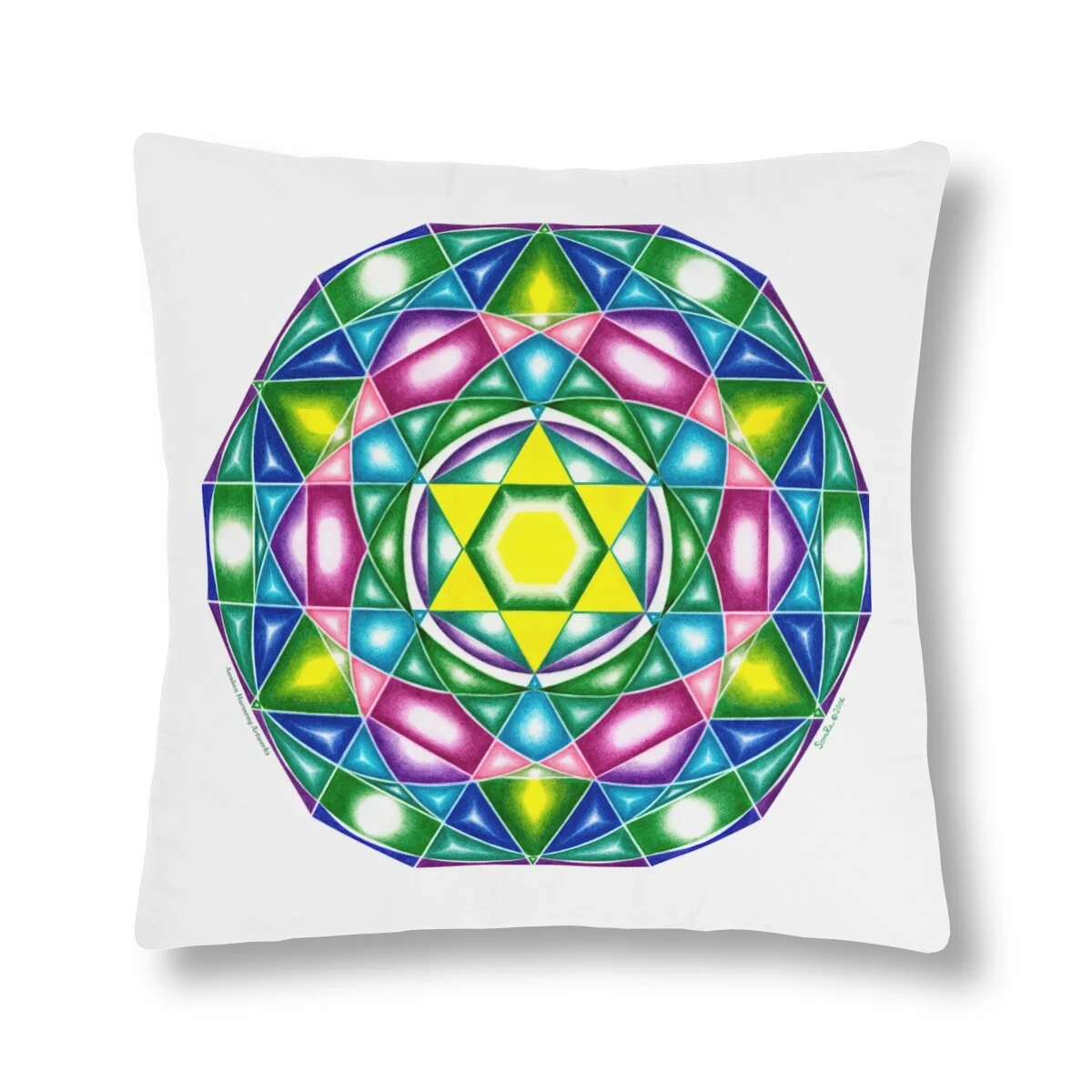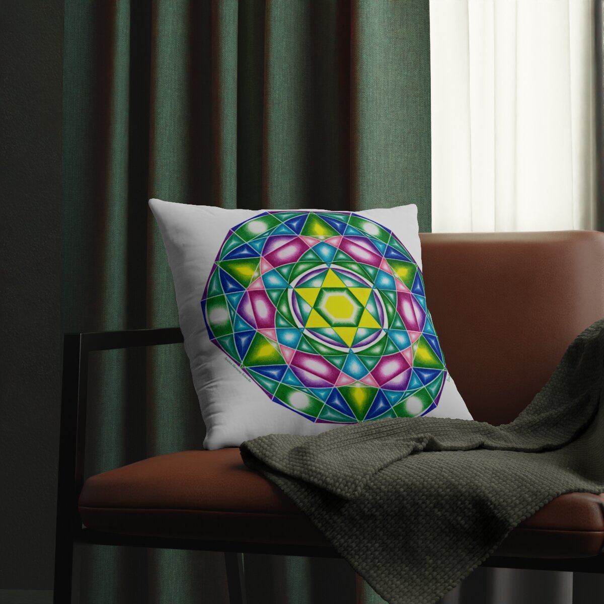 Add beauty, vitality, and harmony to your home with this exquisite Sacred Geometry pillow! Relax and revitalize after a long day, or hug it when you need healing comfort. And it's waterproof! Come rain or coffee spills, these pillows stay fresh, clean, and stain-free. Soft to the touch and perfect for that extra layer of protection from unwanted liquids and oils. Choose one of three different sizes – they all come with a concealed zipper and a removable polyester filling.